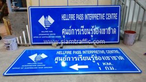 ป้ายแนะนำ ป้ายบังคับ และป้ายสัญลักษณ์ ที่พิพิธภัณฑ์ช่องเขาขาด